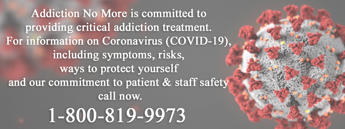 Addiction No More Covid 19 (Corona Virus) Emergency Drug and Alcohol Detoxification Warning At Home Detox Warning: Some drug and alcohol detoxification can be life-threatening. Call us now to discuss our at-home detox or the in-house detox options that are available in your area during social distancing and shelter in place orders. We are